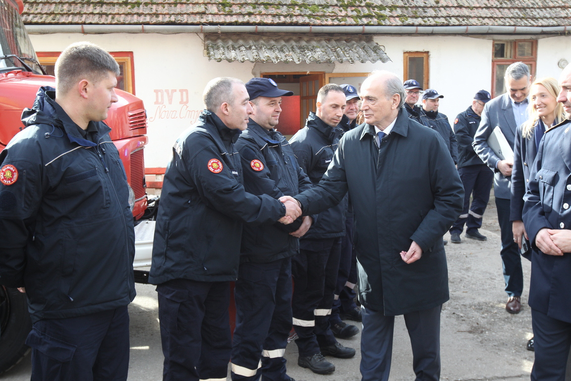 Посета Новој Црњи била је прилика да се обиђе и једно од најстаријих и најопремљенијих Добровољних ватрогасних друштава у Србији јер ће током ове године бити реализован нови програм Министарства за бригу о селу, од посебног значаја за унапређење рада добровољних ватрогасних друштава у сеоским срединама.